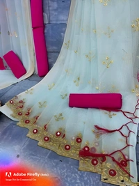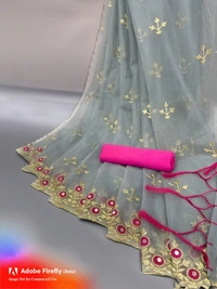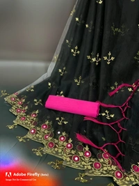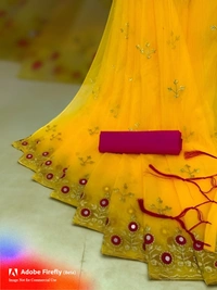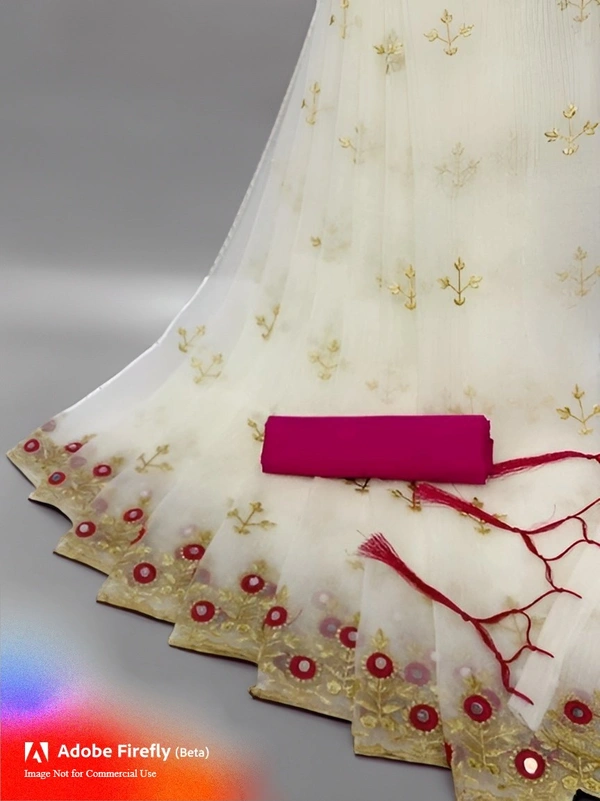 Name: EMBROIDERY WORK NET ORGANGA FABRIC NET SARI WITH UNSTITCH BLOUSE