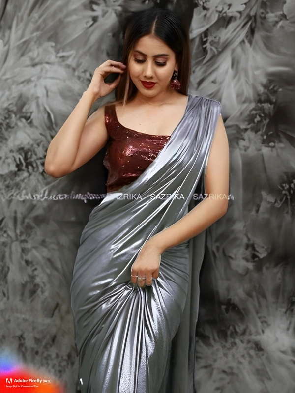 Alluring Sarees , Solid Bollywood Silk Blend Saree ,Embellished Fashion Lycra Blend Saree ,